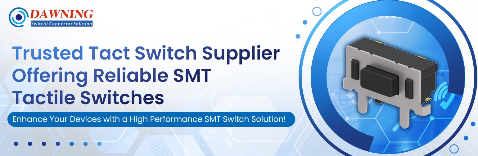 Trusted Tact Switch Supplier Offering Reliable SMT Tactile Switches As a leading tact switch supplier our SMT switch provides precise electronic switch functionality with 50000 cycles lifespan low contact resistance and quick response Its compact design ensures easy PCB integration making it ideal for consumer electronics industrial control automotive and medical applications Engineered for seamless operation our SMT tactile switches offer excellent tactile feedback and reliable signal transmission With a 50mA 12V DC rating and 160gf operating force it delivers outstanding performance in high-demand environments Choose our electronic switch solutions for durability efficiency and precision Contact us today to enhance your products with high-quality SMT switches.